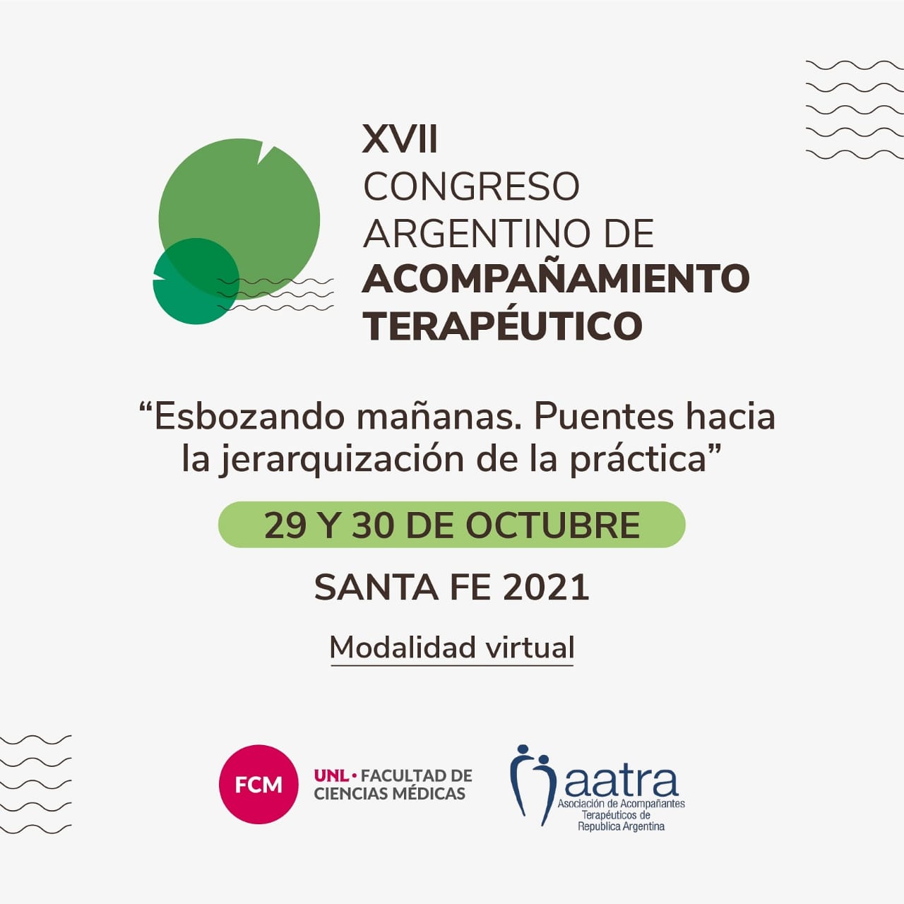 El XVII Congreso Argentino de Acompañamiento Terapéutico fue organizado por la Facultad de Ciencias Médicas de la Universidad Nacional del Litoral (FCM – UNL) y la Asociación de Acompañamiento Terapéutico de la República Argentina (AATRA), Filial Santa Fe. El evento tuvo lugar los días 29 y 30 de octubre, a través del canal de YouTube de la Facultad de Ciencias Médicas – UNL. Bajo el lema “Esbozando mañanas. Puentes hacia la jerarquización de la práctica”, el congreso fue una nueva oportunidad para divulgar e intercambiar los avances más recientes en el campo del acompañamiento terapéutico. Durante el mismo se contó con exposiciones de reconocida trayectoria nacional.